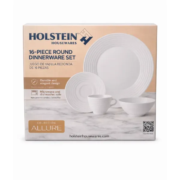 El Juego de Vajilla Redonda de 16 Piezas Holstein es la opción perfecta para darle un toque elegante y moderno a tu mesa. Diseñado para brindar funcionalidad y estilo, este set incluye todo lo necesario para servir hasta 4 personas, combinando platos extendidos, platos chicos, tazones y tazas en un diseño armonioso y sofisticado. Fabricada con materiales resistentes y duraderos, esta vajilla ofrece excelente desempeño para el uso diario o para ocasiones especiales. Su acabado limpio y contemporáneo se adapta fácilmente a cualquier decoración, mientras que su practicidad la hace ideal para facilitar tu rutina en la cocina. Con Holstein, cada comida se convierte en una experiencia especial.