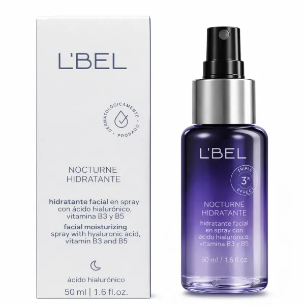 El Nocturne Hidratante Facial de L’BEL es un hidratante facial en spray diseñado para revitalizar la piel y brindarle una hidratación profunda. Su fórmula contiene ácido hialurónico, vitamina B3 y vitamina B5, ingredientes que ayudan a mantener la piel hidratada, suave y luminosa. Gracias a su tecnología Triple Effect, este producto rehidrata, desintoxica y revitaliza la piel, ayudando a mejorar su apariencia y prepararla para la reparación nocturna. Su textura ligera se absorbe rápidamente, dejando una sensación fresca sin sensación pegajosa, ideal para todo tipo de piel.